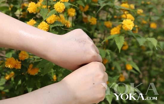 用手指涂開,很水潤的質(zhì)地,而且不厚重容易延展,它還具有防水抗汗功呢,春游季帶它出門便攜又給力。
