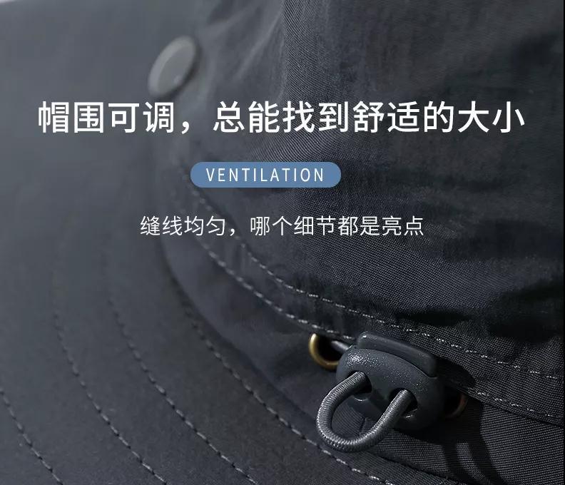 帽子自重輕盈,戴著無負(fù)擔(dān)。防風(fēng)帽繩能根據(jù)頭部大小自由調(diào)節(jié),狂風(fēng)吹不怕掉落。