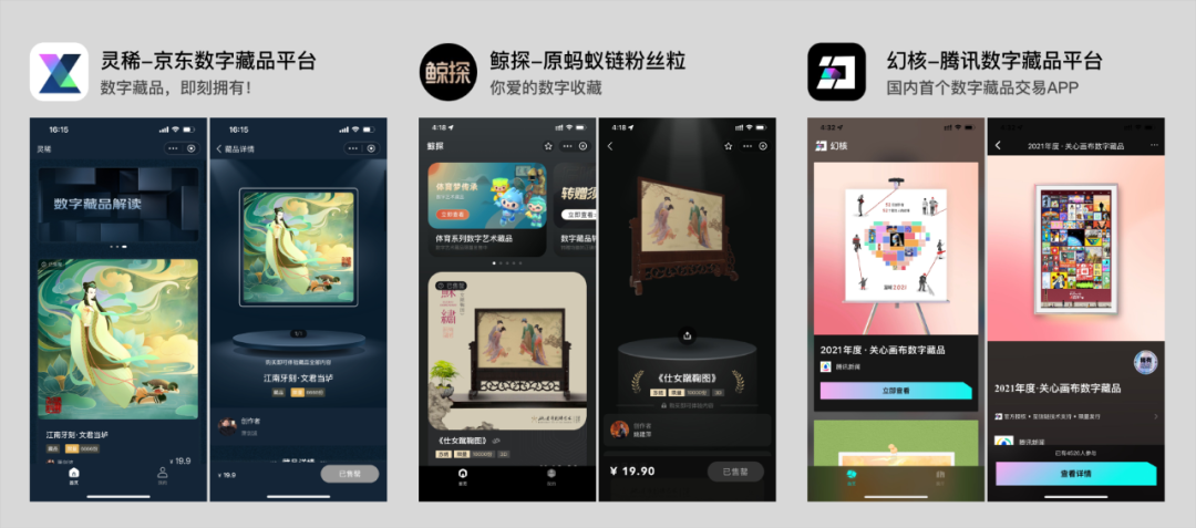 近日,京東也正式上線「靈稀」數(shù)字藏品交易平臺(tái),該平臺(tái)所有數(shù)字藏品將由京東云提供的區(qū)塊鏈技術(shù)服務(wù)京東智臻鏈進(jìn)行標(biāo)識(shí)。目前國(guó)內(nèi)布局?jǐn)?shù)字藏品交易平臺(tái)的科技巨頭已經(jīng)有三家:螞蟻旗下的「鯨探」、京東的「靈稀」以及騰訊旗下的「幻核」。除了后者是獨(dú)立APP,前兩者均為小程序。