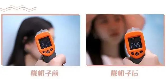 帽檐摸上去滑滑的,冰冰的,帽子底下的溫度比外面整整低了7°,不怕戴著悶熱花妝,反而更加涼爽了。
