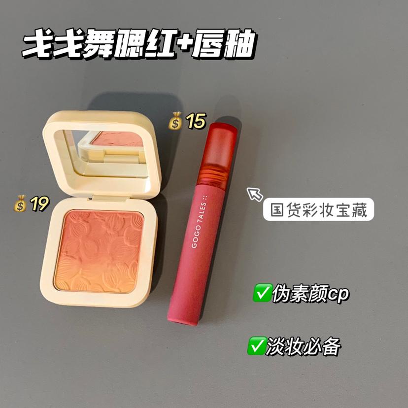 偽素顏天花板組合。腮紅淺淺的橘粉色,過度自然飽和度剛剛好,唇釉是奶茶色的,水潤遮唇紋,自然又襯膚色。