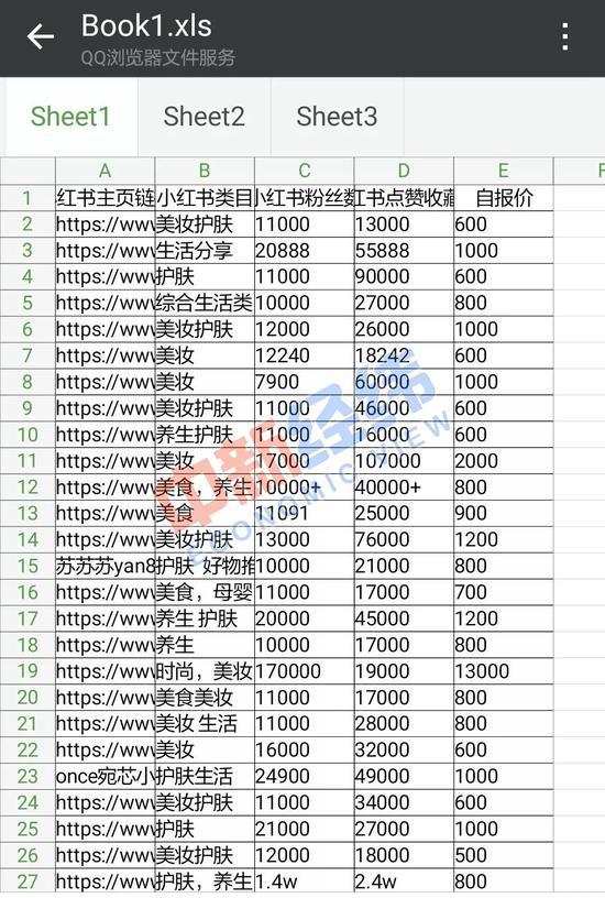 至于筆記代發(fā)的價格,小秋則提供了一份更為詳細(xì)的清單。在這份清單上,不僅有代發(fā)人在小紅書的主頁鏈接、所屬類目,還有粉絲數(shù)、點贊收藏數(shù)和自報價。小秋向中新經(jīng)緯解釋,這份清單是之前做過的產(chǎn)品報價,僅供參考。筆記代發(fā)是沒有固定價格的,因為每位達(dá)人的要價不一樣,達(dá)人看了產(chǎn)品才會給出報價。