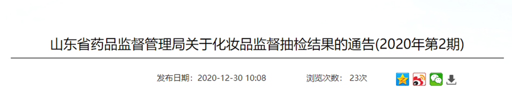 山東省藥品監(jiān)督管理局網(wǎng)站近日發(fā)布關(guān)于化妝品監(jiān)督抽檢結(jié)果的通告(2020年第2期)。