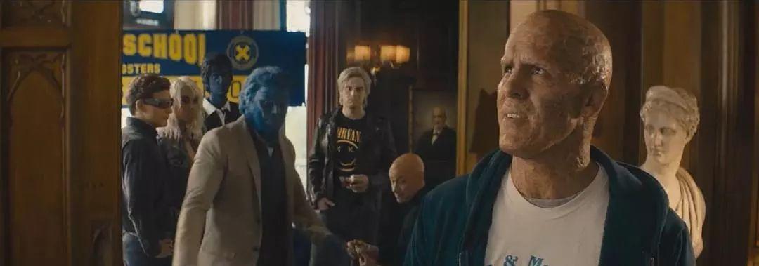 回到變種人學(xué)校,死侍坐著X教授輪椅亂逛,還把教授的腦波機掰斷了。
