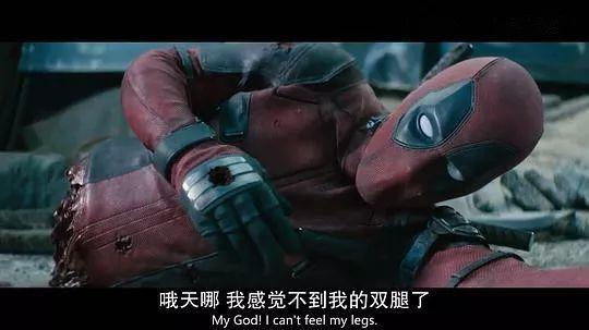 后來死侍被紅坦克撕成兩半,倒在地上的死侍說“我感覺不到我的腿啦!”