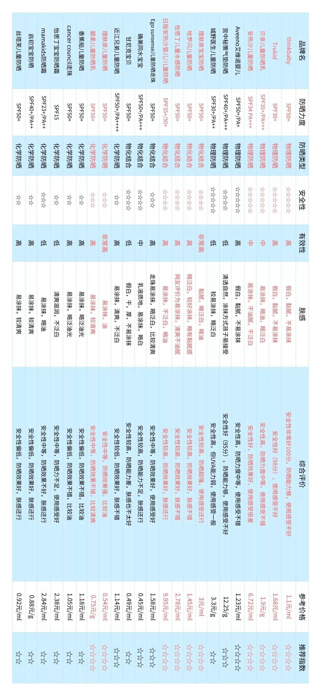 分析了23款兒童防曬霜,在物理防曬里,我推薦thinkbaby,trukid這兩款防曬霜的性高,但使用體驗(yàn)不夠好,如果能夠能接受它們假白、不易涂抹的缺點(diǎn),它們就是很好的選擇。如果一定要從這兩款中選一款的話,我選thinkbaby,不地好涂抹一點(diǎn),另外價(jià)格便宜。