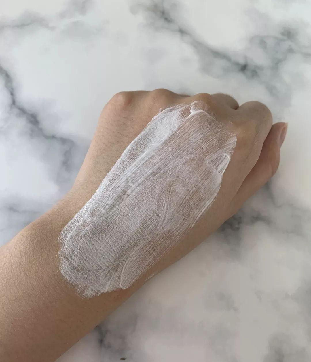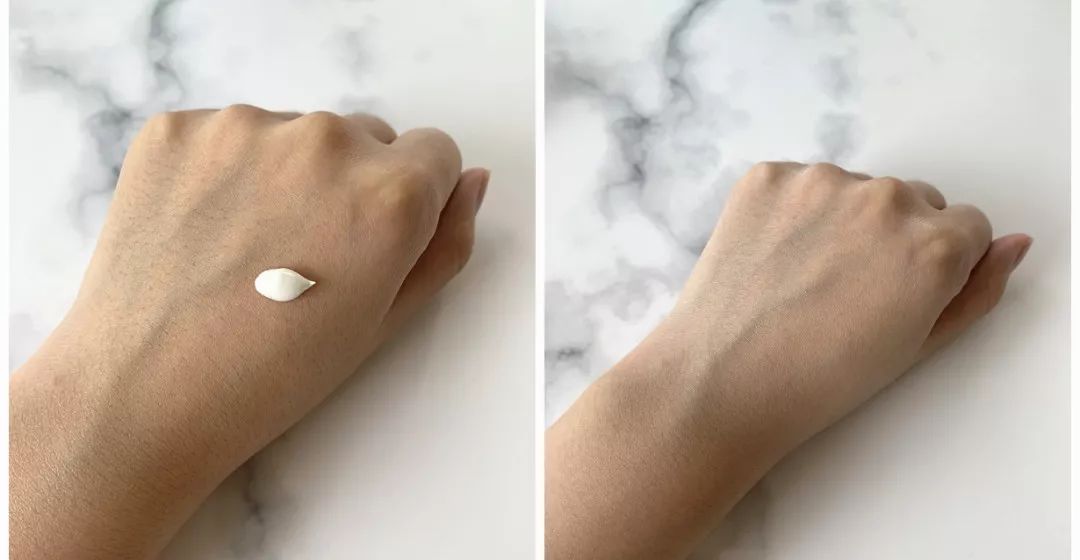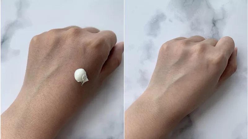 擠出來(lái)能聞到一股很的奶香味,涂上皮膚感覺有些厚、白、干,并且很難均勻涂開,如果要大面積涂抹,會(huì)比較費(fèi)勁一些。