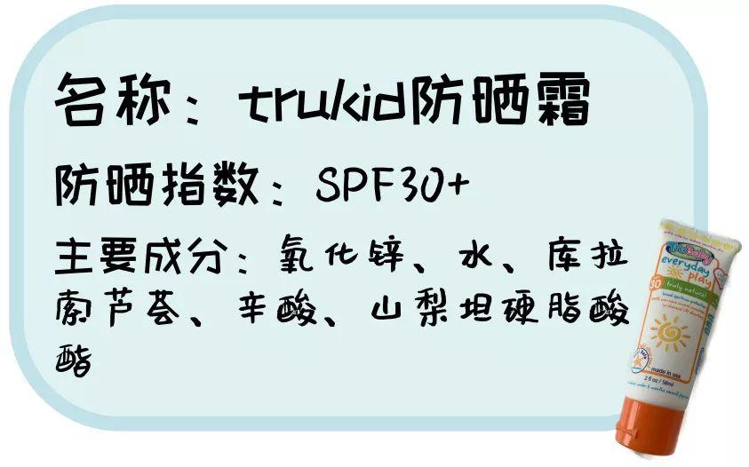 和thinkbaby一樣,trukid也是以20%濃度的氧化鋅為防曬成分的純物理防曬。同樣是20%濃度的氧化鋅,trukid標(biāo)的防曬值是SPF30+,感覺這點(diǎn)比thinkbaby誠(chéng)實(shí)一點(diǎn)。
