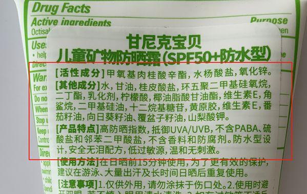 甘尼克寶貝是物化結(jié)合的防曬,在產(chǎn)品的背面有成分表可以直接查看。