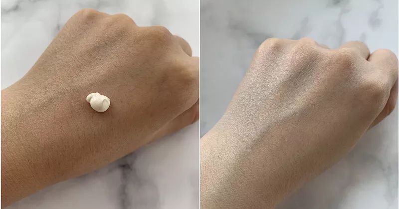 比起其他厚重泛白的物理防曬,它算相當(dāng)輕透自然!略微有提亮膚色的作用,不假白。