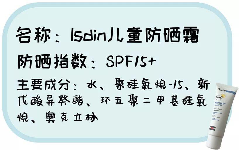 西班牙怡思丁的兒童防曬真是讓我太吃驚了!它的配方用到的防曬劑比成人的多,彌補(bǔ)了成人防曬中防UVA只有一個(gè)光穩(wěn)定性很差的阿伏苯宗的缺陷。防曬果要比成人的好得多!膚感也還不錯(cuò),用成人款怡思丁的朋友以后可以考慮換成兒童版怡思丁了……不過(guò)要注意,不要買錯(cuò)了,TB上有兩家“旗艦店”,其中一家賣的是一款防曬果不好的化學(xué)防曬霜。
