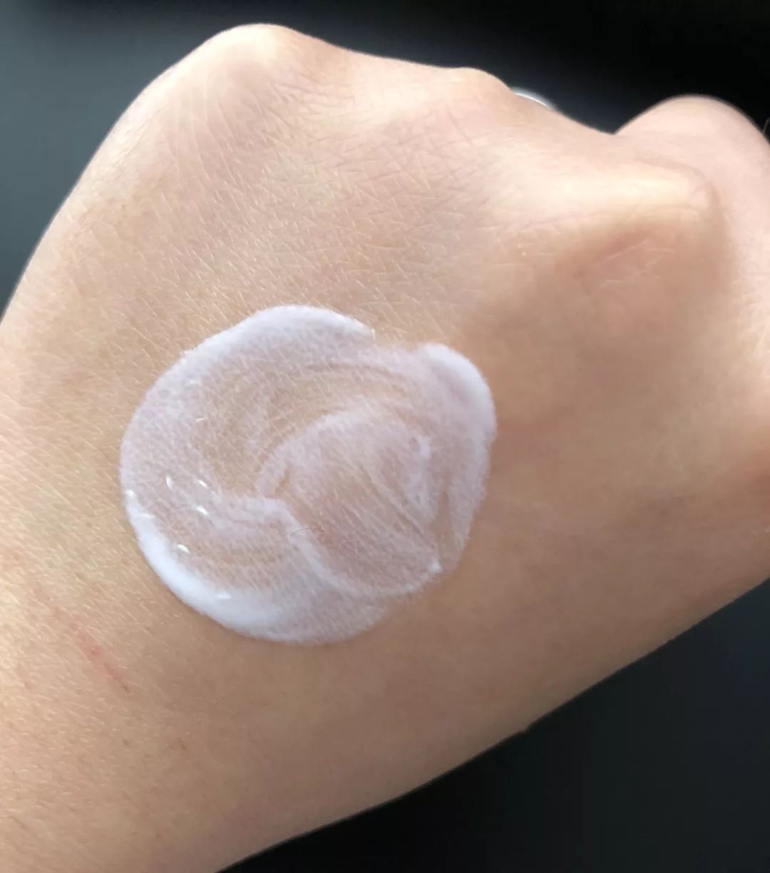 濃稠乳液的質(zhì)地很容易涂抹開,味道略微不太好聞,比較黏膩,有些油,略微泛白。
