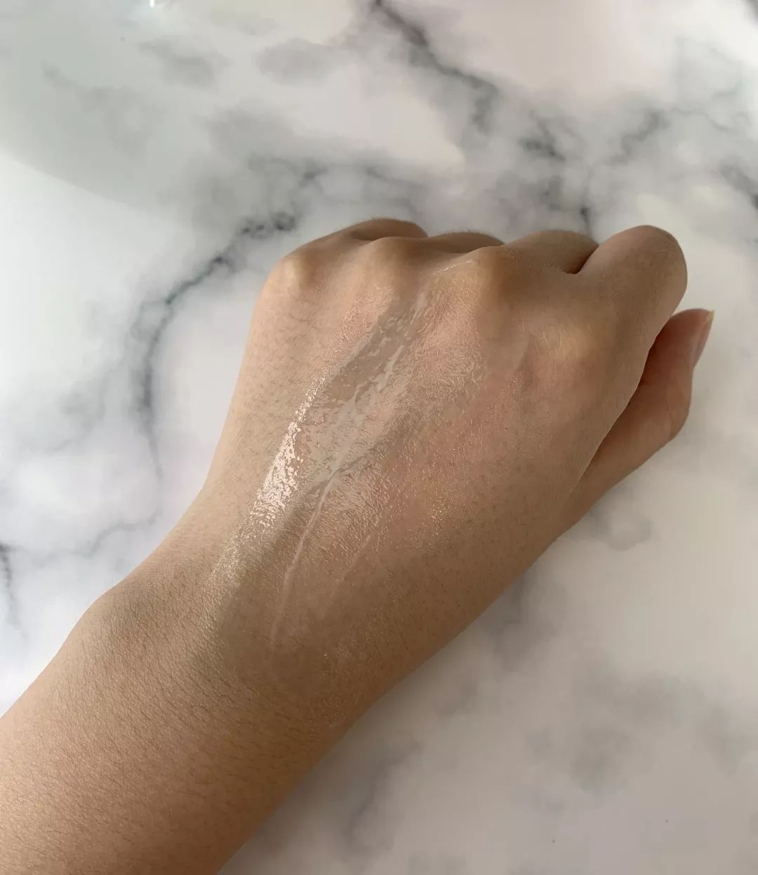 淺黃色的乳液質(zhì)地好推開,全身涂抹也不會(huì)費(fèi)時(shí)費(fèi)勁。涂上稍微有些油膩,不會(huì)泛白,在使用感方面是不錯(cuò)的。