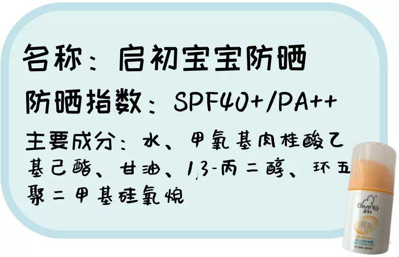 啟初寶寶防曬是一款化學(xué)防曬。它用到的化學(xué)防曬劑有四種:桂皮酸鹽、苯基苯并咪唑磺酸、Tinosorb S和Uvinul A Plus。