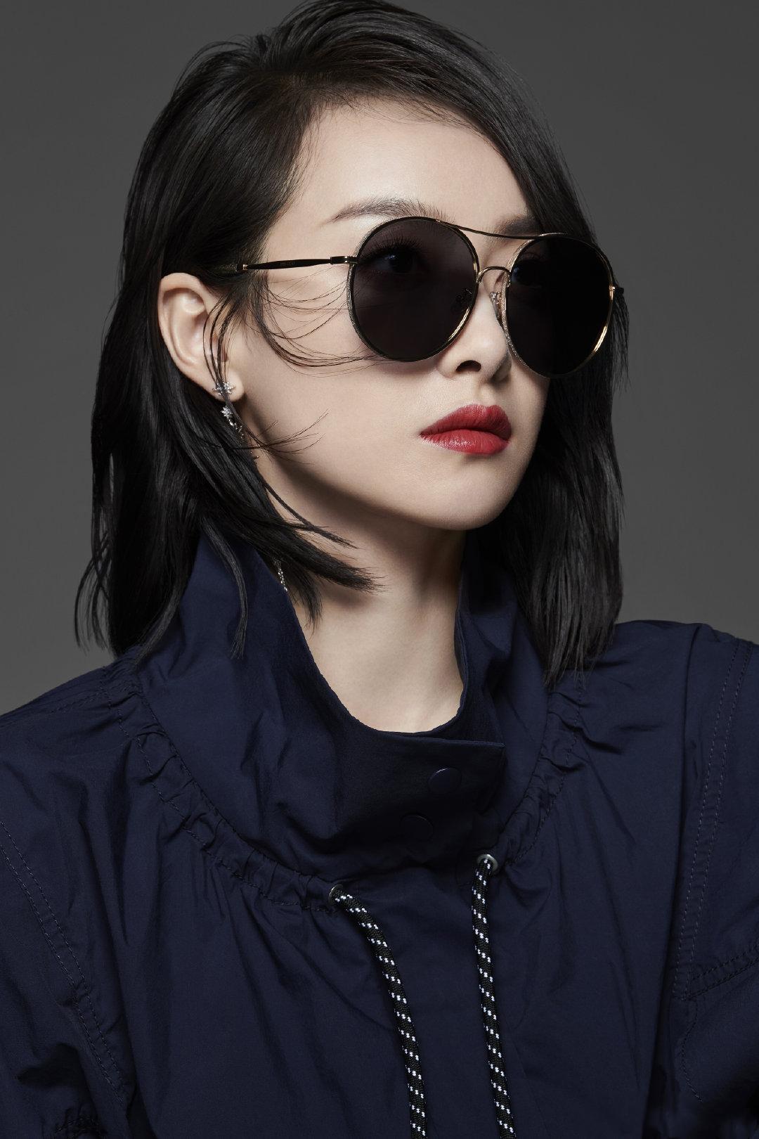 當然,作為擁有墨鏡的時尚達人,我們鄭總是不會只局限于戴黑邊框的。所以她有時也會搭配上衣服戴上像這樣的深藍色邊框的墨鏡來形成一個呼應。這樣方框的太陽眼鏡好處也是很多,不僅是可以讓圓臉的朋友們看起來顯瘦一些,還能營造一種成熟的感覺,很適合上班的朋友們選擇哦!不過還是那句話,臉型偏方的小伙伴們就不要選擇這種款式啦,會不太適合的。