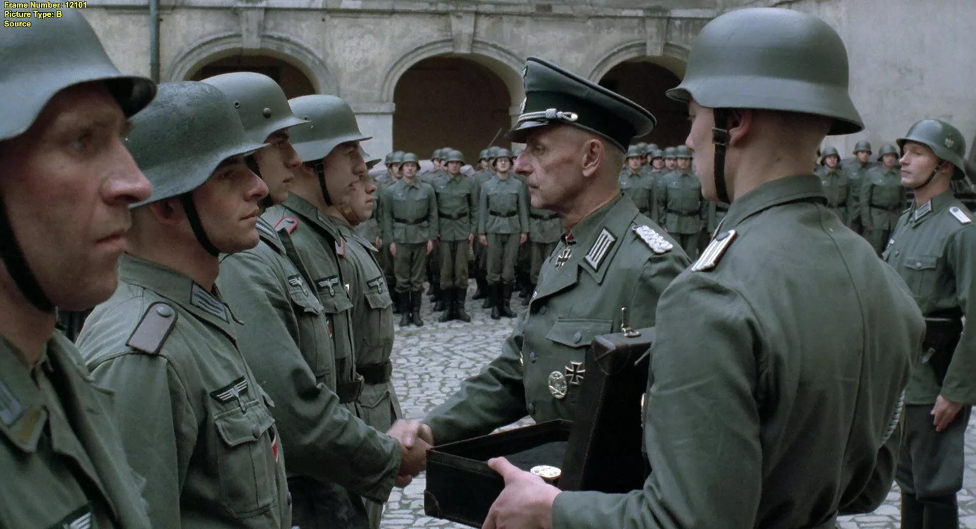 惱怒的海因茨找到首先開槍的德軍士兵一頓痛打,那個士兵威脅要上軍事法庭控告漢斯中尉通敵,但他很快發(fā)現(xiàn)他面對的是士兵們敵意的眼神。士兵們已經(jīng)接受了漢斯中尉。