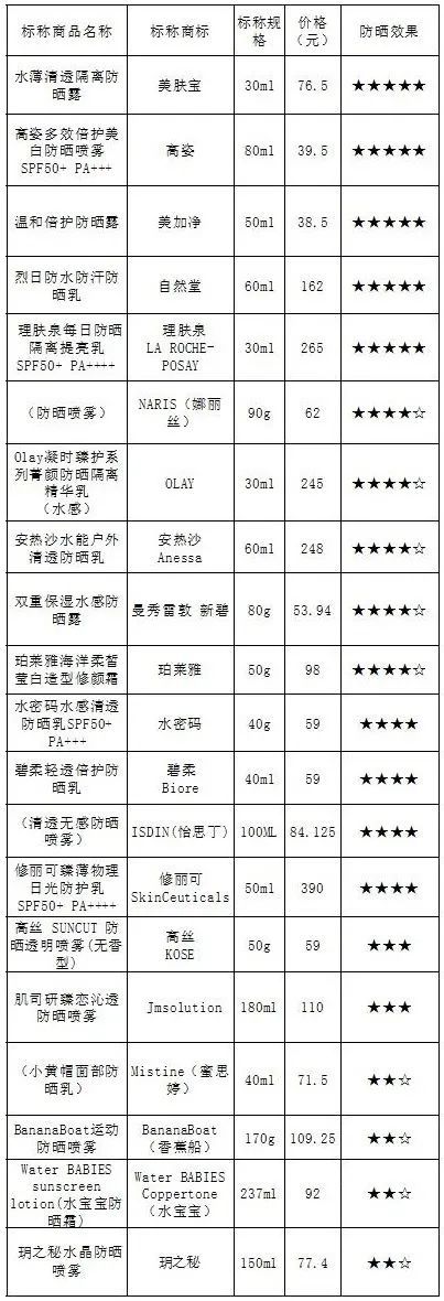 ②7件國產(chǎn)品牌的樣品防曬果較好:4件獲評(píng)五顆星,2件四顆半星,1件四顆星。