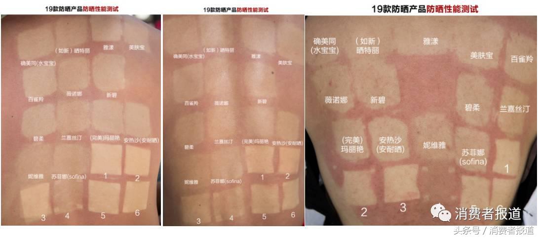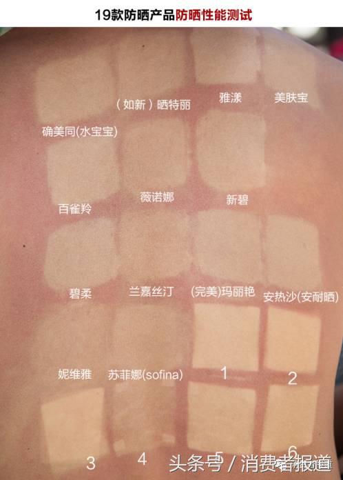 ▲標1-6序號的即為防曬織物,從膚色看出,它們的果普遍好于防曬霜