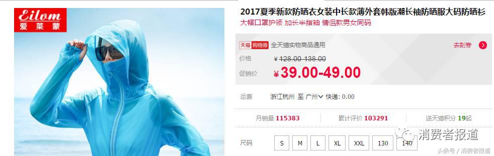 調(diào)(ji)皮(zhi)的消道長還選擇了一款淘寶(月銷11萬件)、但售價僅為39元的愛萊蒙2017夏季新款防曬衣加入測試。