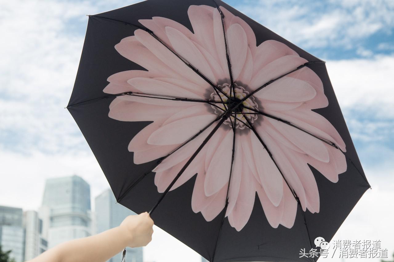 此次測試還加入了蕉下、天堂2款太陽傘。兩款傘面均采用正面純黑,底面有大花的造型。不過,蕉下采用的是雙層布加涂層,輕便性稍遜,但防曬果實測確實好于單層布的天堂傘。日常使用中,選擇加密和加厚的陽傘布料,也能帶來更好清涼和防曬果。