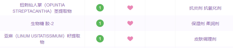 除此之外還添加了一些抗炎舒敏成分,能夠溫和修護破損皮膚屏障。仙人掌莖提取物能夠抗菌抗炎,有防治粉刺的果。