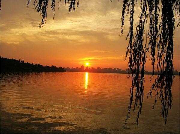 這是傍晚的西湖,周?chē)兴聫R和倒拔垂楊柳,會(huì)讓你美不勝收