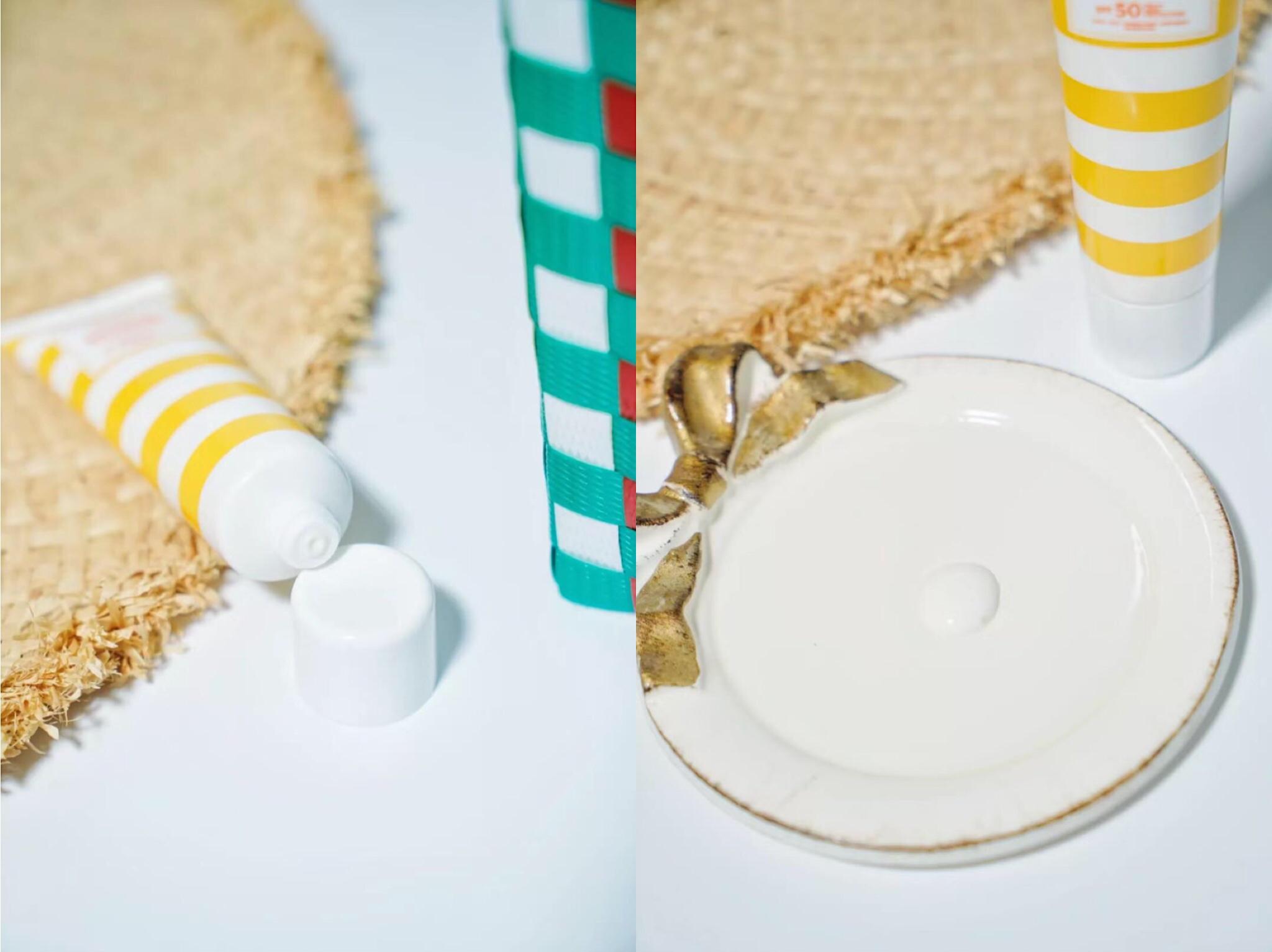 這支防曬乳是黃色牙膏管包裝,看著很有夏天的小海灘、小陽光的風(fēng)情。它里面含有光譜防曬科技,針對所有光譜,能保護(hù)肌膚不受傷害;還能抑制黑色素從而達(dá)到美白和抗氧化的果,讓肌膚均勻透亮~~而且含有舒敏復(fù)合物和保濕的配方,適合敏感肌人群使用。