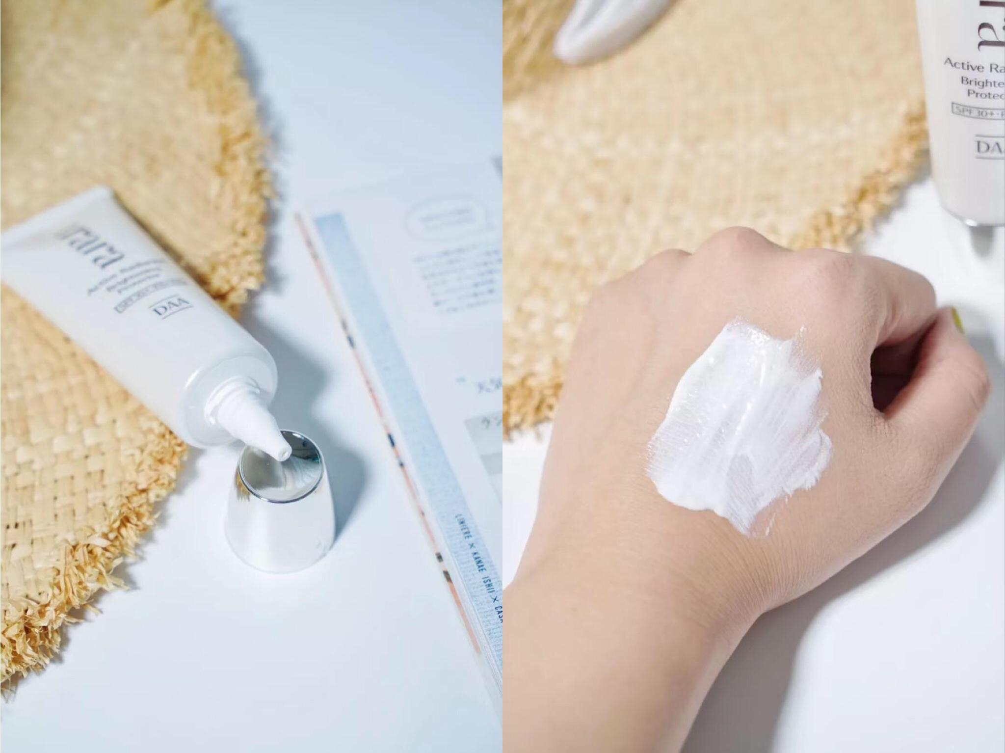 它的主打成分叫DAA即D-氨基酸成分,是一種少量存在于人體肌膚中的物質(zhì),能夠提升肌膚透明感,另外里面還有海洋礦物保濕復(fù)合成分,結(jié)合在一起的大功就是防御紫外線引起的暗沉,保護(hù)肌膚不受環(huán)境污染,同時還美白保濕!說明它已經(jīng)是一個成熟的防曬乳了,可以自己獨當(dāng)一面,能防曬能美白還能保濕,真的很棒!