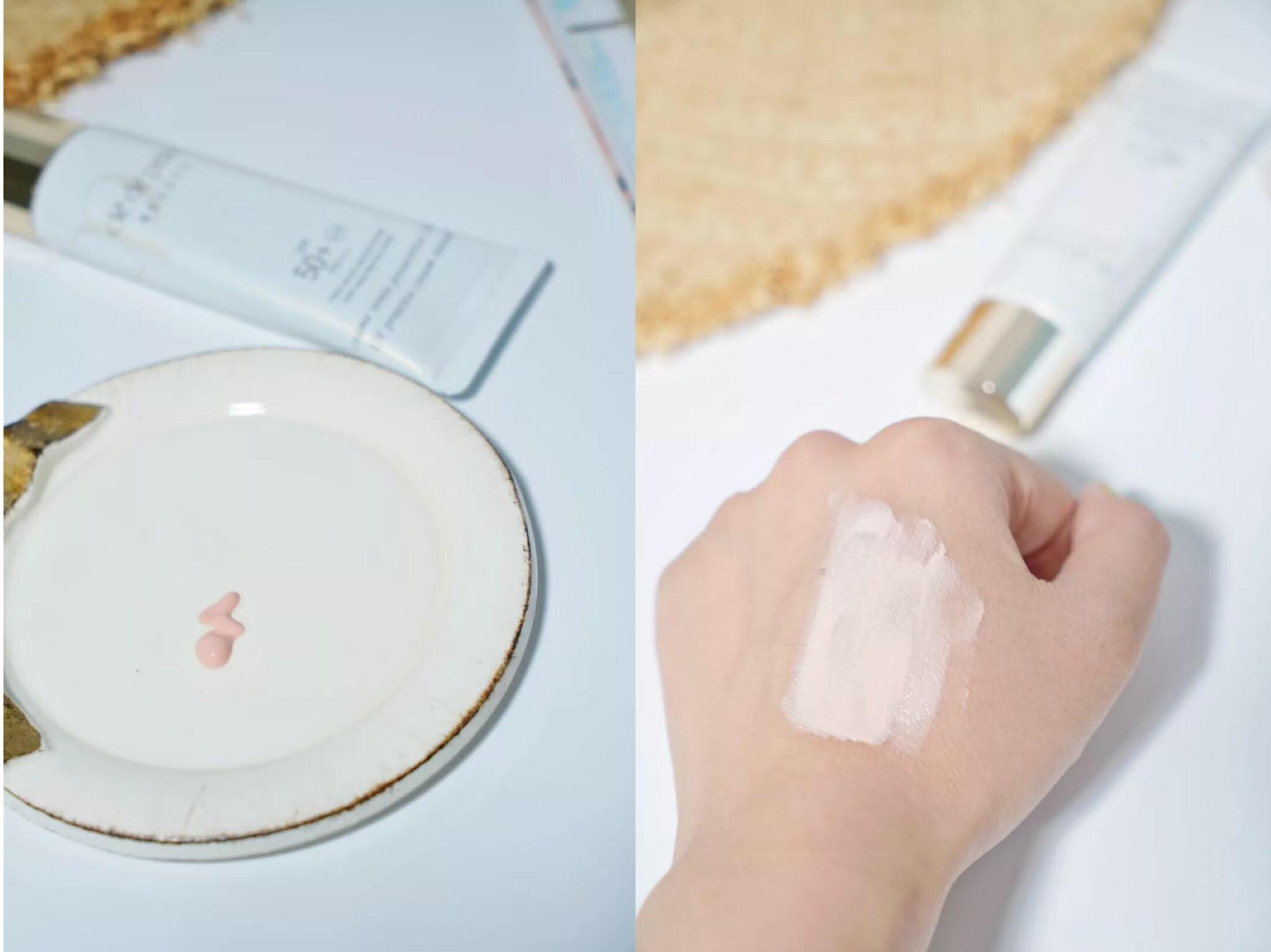 擠出來它的質(zhì)地是白色乳液狀,很輕薄水潤好推開,自帶一股清香的味道。它的觸感清爽,一點都不粘膩,而且可以看到是有珠光在里面的,帶有一點點的修飾膚色的作用,上粉底前涂它,既能起到防曬的作用,呈現(xiàn)出底妝的光澤感也好好看啊~