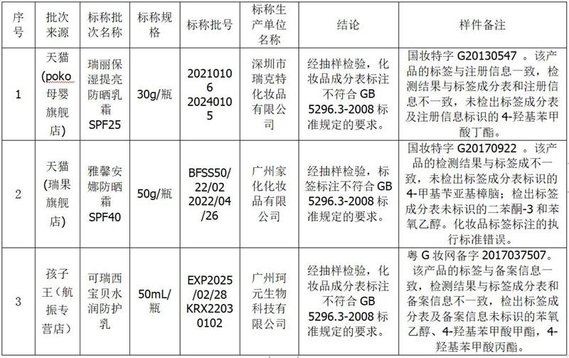 不過(guò),瑞麗保濕提亮防曬乳霜、雅馨安娜防曬霜、可瑞西寶貝水潤(rùn)防護(hù)乳這3批次樣品,存在不符合相關(guān)要求的現(xiàn)象,具體表現(xiàn)如下:
