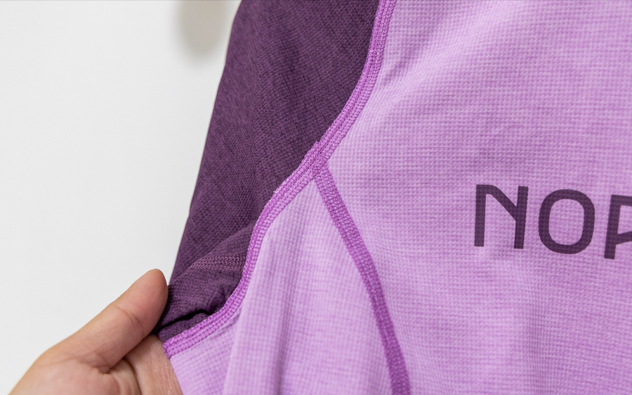 第一件就來介紹常見的聚酯纖維排汗衣,fjora equaliser 短袖排汗衣整件為90%為回收再生纖維、10%聚酯纖維,是一件輕薄快干的排汗上衣,重量僅90g,十分輕??;市面上的聚酯纖維排汗衣選擇很多樣,不過重要的是看自己的使用需求,以這件而言,就是差在使用的布料以及細(xì)節(jié)上的差異,版型及剪裁是否修身也很重要。在山上愛穿鮮艷顏色的人一定會注意到,這件深紫搭配丁香紫的撞色很亮眼,這也是我喜歡他們家服飾的原因之一。