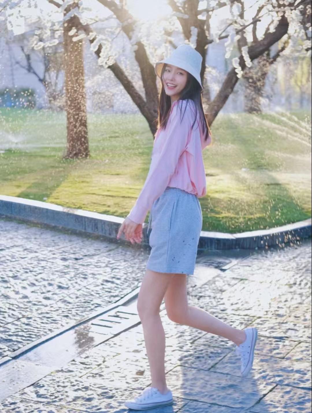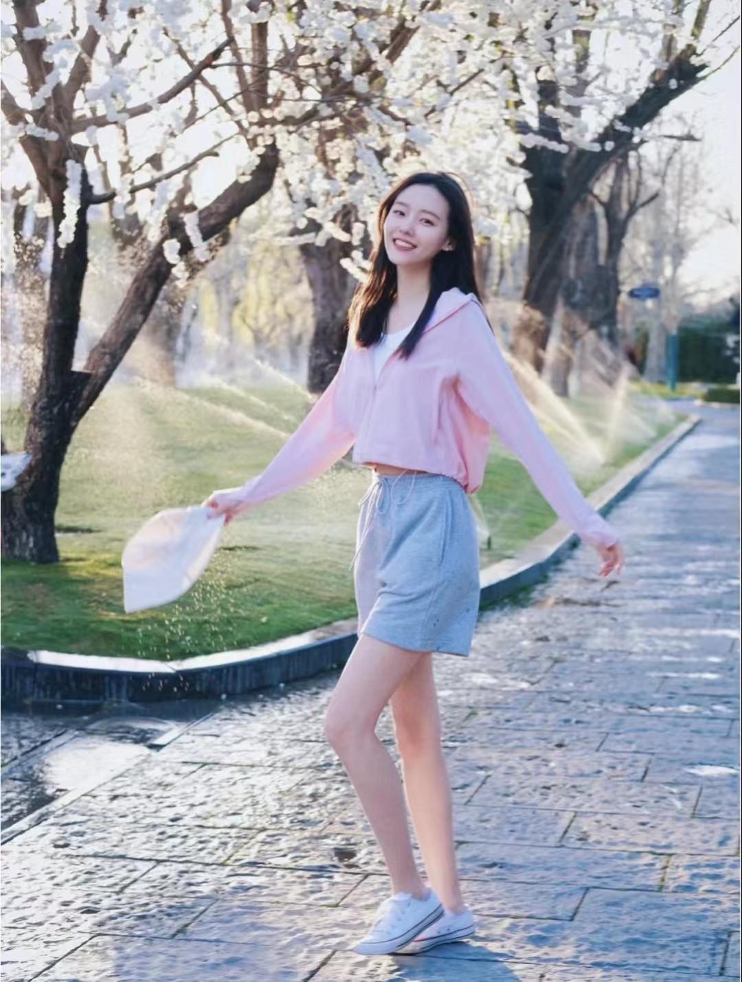 吊帶+短褲怎么穿都是元氣滿滿的樣子,外搭一件粉嫩嫩的防曬衣,畢竟太陽有點大。出門前把胳膊脖子抹滿防曬霜真的太麻煩了,好在現(xiàn)在防曬衣的設(shè)計都比較時尚,是一件日常休閑運動搭配的開衫。