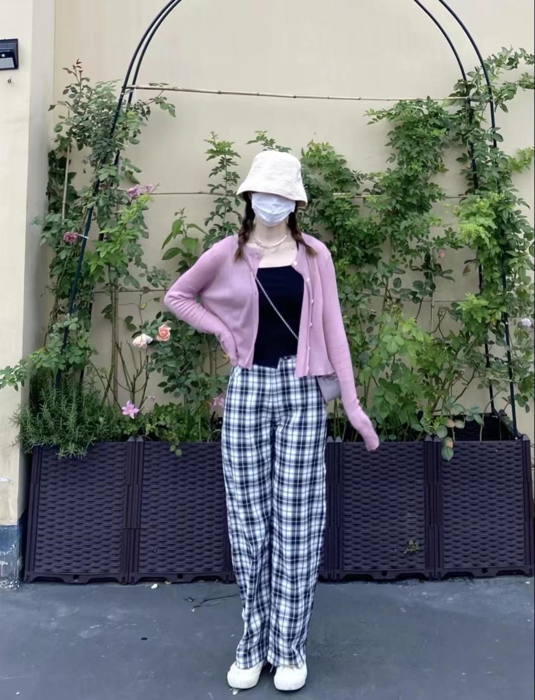 香芋紫防曬小開衫顏色顯白又防曬,小開衫是那種網(wǎng)紗帶針織的感覺,上身挺涼快,彈性大,單穿或者搭配吊帶都可以,內(nèi)里搭配一個黑色吊帶,脖頸間顯得更白了,下面搭配一個格子褲休閑又簡單,日常出門的休閑穿搭。