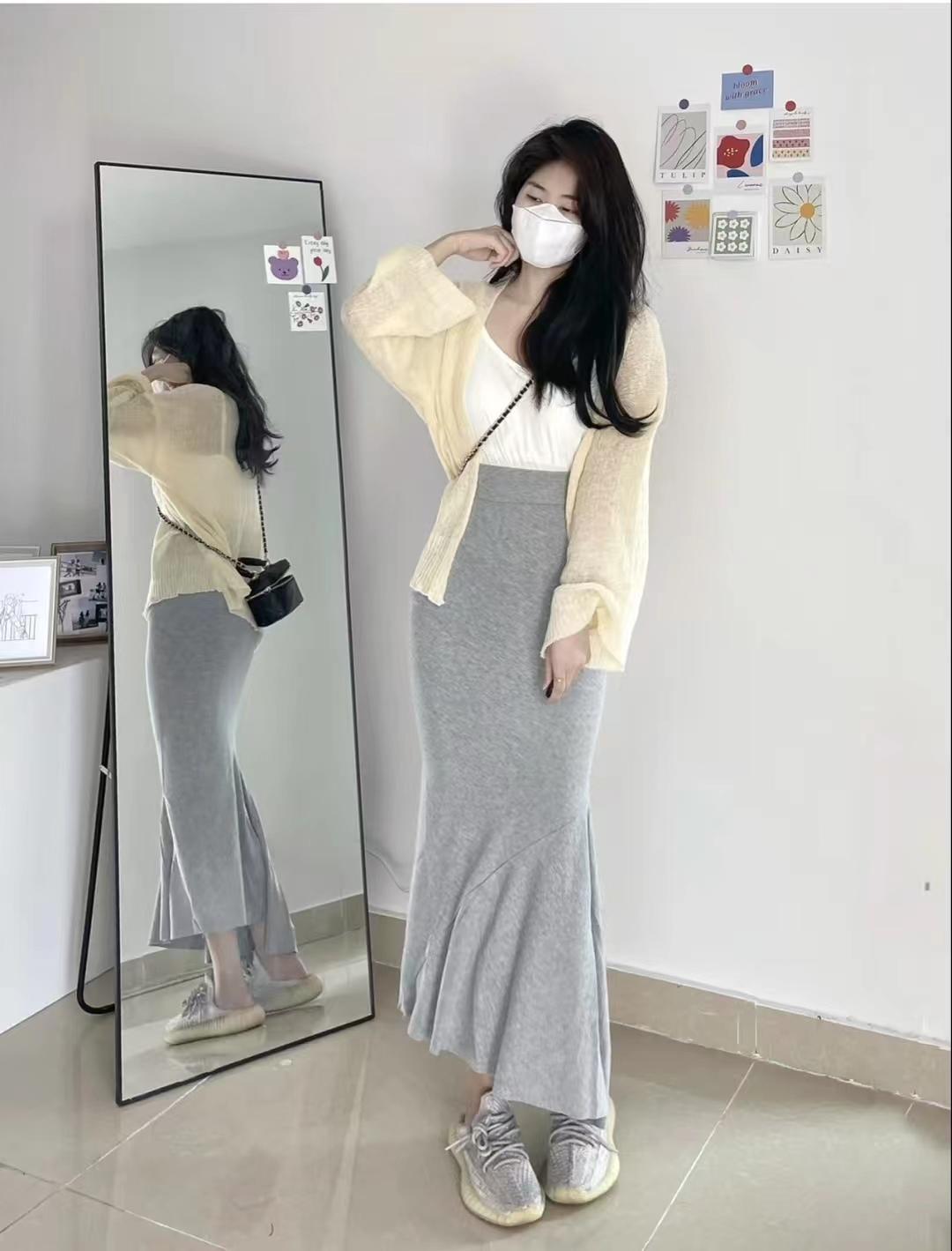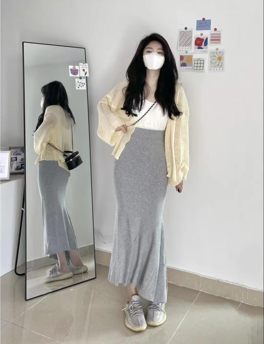 防曬開衫+魚尾裙是純欲風韓系溫柔女主穿搭:這一套就是溫柔天花板,防曬針織開衫配上吊帶背心加上魚尾裙真的太純欲了,魚尾裙真的顯身材,慵懶又溫柔,穿上這套真有那韓劇女主那感覺了,夏天穿也不會熱。