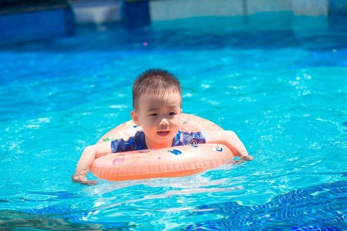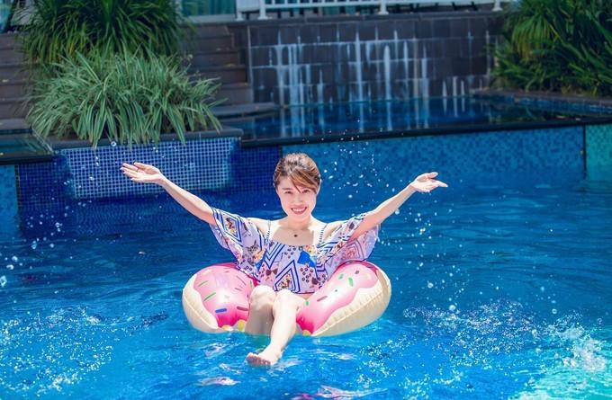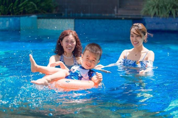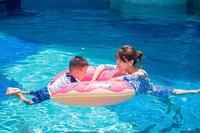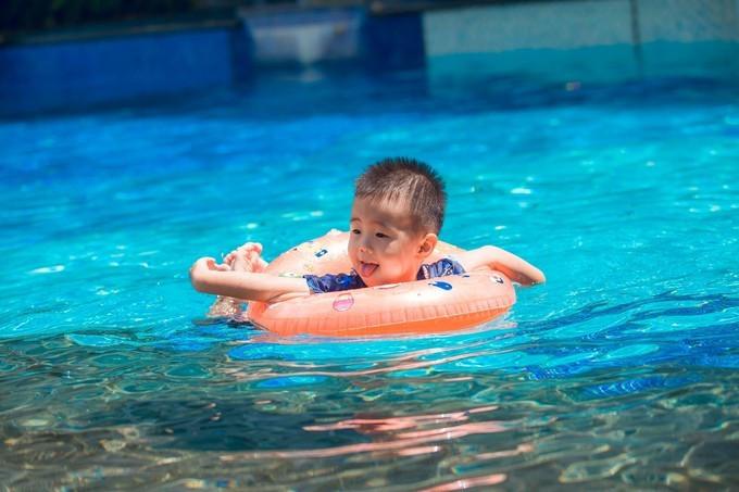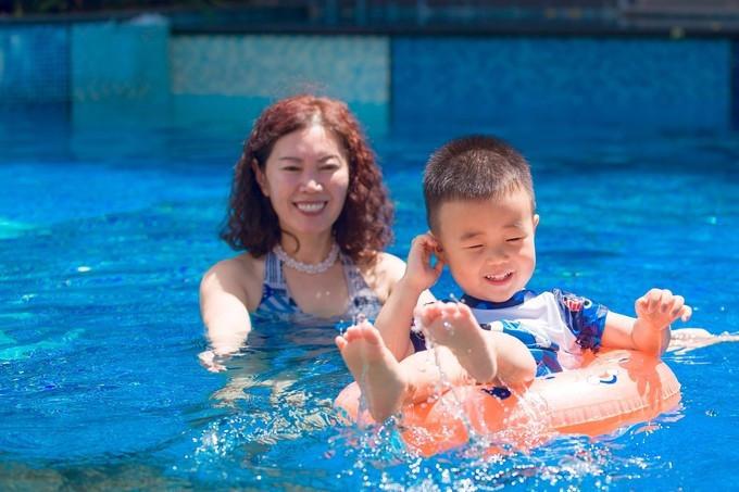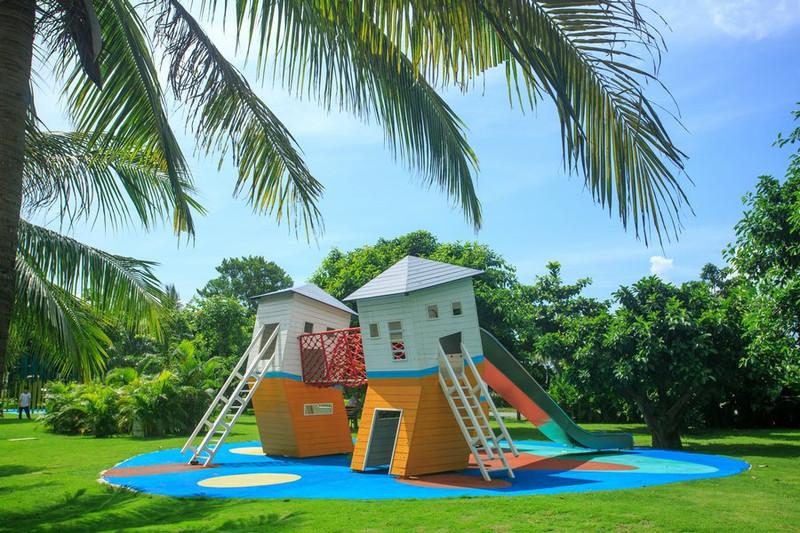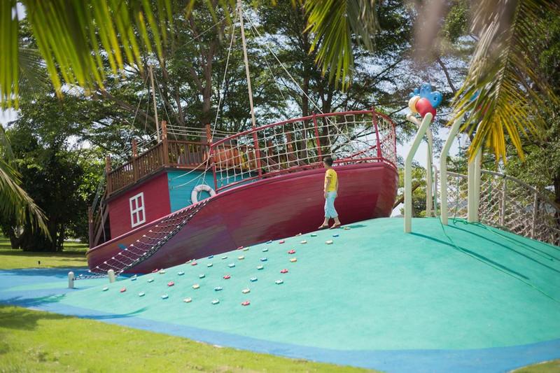 酒店有三個(gè)泳池,其中大的那個(gè)泳池水是淺,小孩子居多,所以泳池邊上還布置了供小朋友玩耍的兒童設(shè)備。