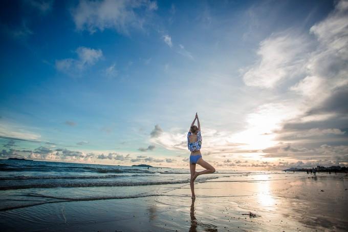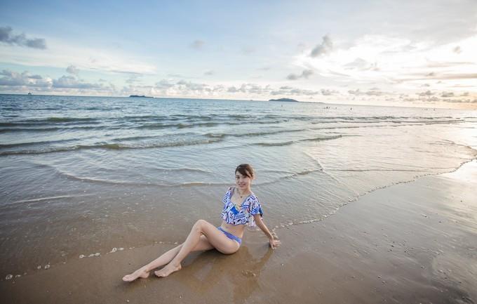 而我,在這鮮有人跡的傍晚海灘也縱情又愜意的弄姿起來。這樣的天空,這樣的夕陽(yáng),這樣的海灘,靜美而富有甜意,柔情而不失活潑,我們?nèi)怂坪蹩缭搅四昙o(jì),都秉著一個(gè)童心在逐浪,戲水。