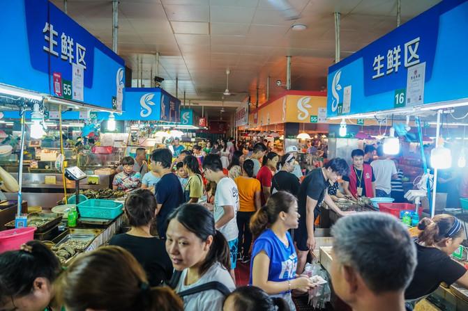 接下來游第一市場(chǎng),吃吳小胖海鮮加工店