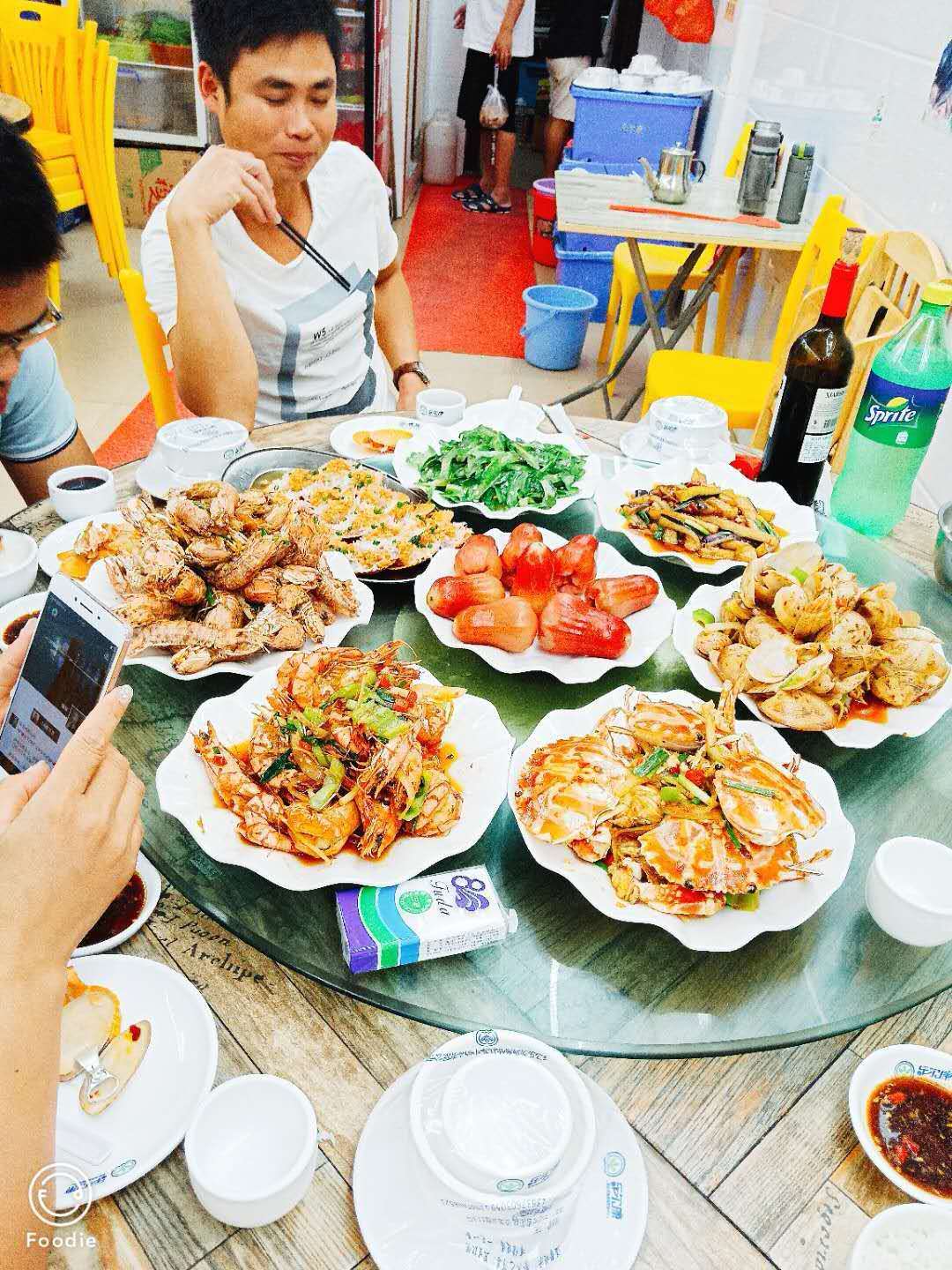 所以到了第一市場(chǎng)我們便繞過拉客妹直接去了130號(hào)的吳小胖,跟網(wǎng)上說的一樣,他們會(huì)免費(fèi)帶我們?nèi)ベI海鮮,選海鮮和砍價(jià)。而且一到市場(chǎng)就會(huì)有人一直跟著邇,使勁兒要邇?nèi)ニ抢锛庸?,全程跟著邇,幫邇提海鮮,實(shí)在是。。。整個(gè)買海鮮的過程就像打仗!