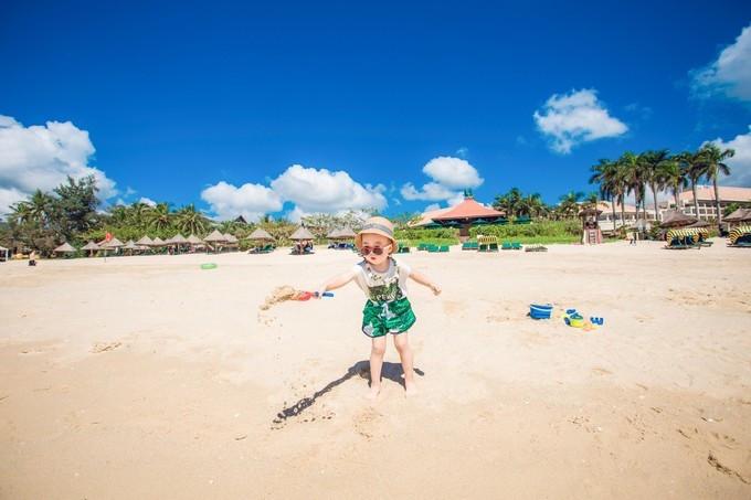 根據(jù)三亞氣候特點(diǎn),戶外活動(dòng)盡量選擇在上午10點(diǎn)半以前和下午4點(diǎn)以后。因此,早起的鳥兒便能較為盡興的擁抱碧海藍(lán)天。小家伙也似乎深諳此理,沒有睡懶覺,早早就自己起床洗漱準(zhǔn)備更衣出發(fā)。
