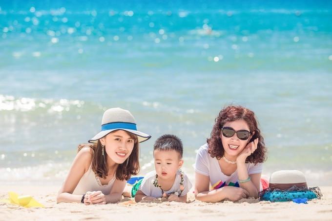 這一天注定是藍(lán)色系的天然組合,蔚藍(lán)色的天空、碧藍(lán)色的大海,再著一身墨蘭親子花裙,讓我和我的媽媽、我的寶貝都變成了畫里的主角,故事便由此誕生。