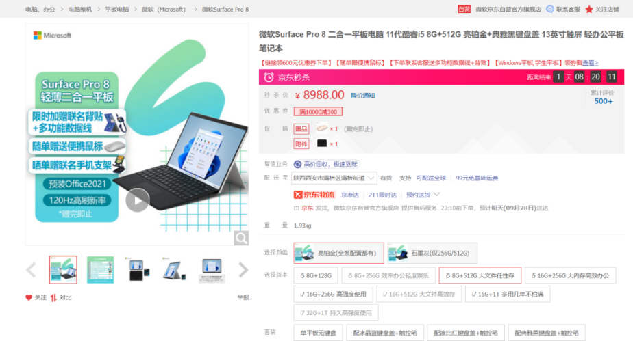 不得不說,作為國際的微軟Surface Pro8各方面是真的不錯,i5 1135G7處理器配合256G的存儲空間,加上是微軟的親兒子,微軟Surface Pro8二合一平板的價格也是昂貴,8G+256G的價格已經(jīng)將近9000元,如果再選擇高配,那再配一些殼、膜,價格直逼萬元,讓我望而卻步。