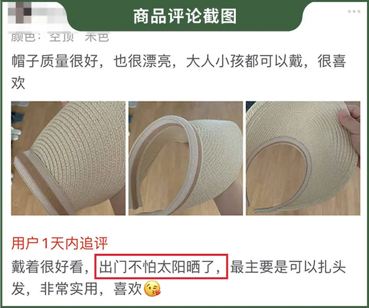 雖然上網(wǎng)一搜,幾乎每個草帽的評論區(qū)都在說可以遮陽: