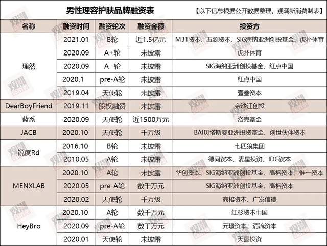 雖然新銳男性理容護(hù)膚品牌還都處于早期階段,但背后投資方不乏紅杉資本中國、IDG資本、五源資本、貝塔斯曼亞洲投資基金、高榕資本等一線機(jī)構(gòu),就連直男聚集地虎撲都入局了。