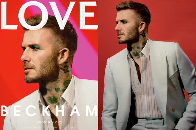3、第一個(gè)“下線”的男妝品牌2019年1月,貝克漢姆涂上了女生們嫌棄的蒼蠅綠眼影登上了《Love》雜志封面。即使化了妝,貝克漢姆依舊是綠茵場(chǎng)上矯健的猛男。