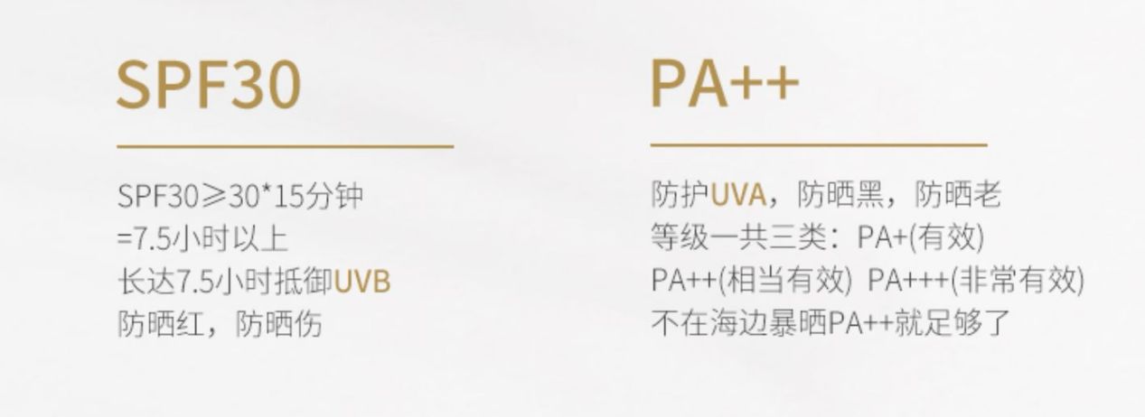 所以在選擇防曬霜時,不能將防曬果張冠李戴只看SPF值,對于絕大部分想防曬黑的小伙伴來說,“+”多少也是需要注意的。