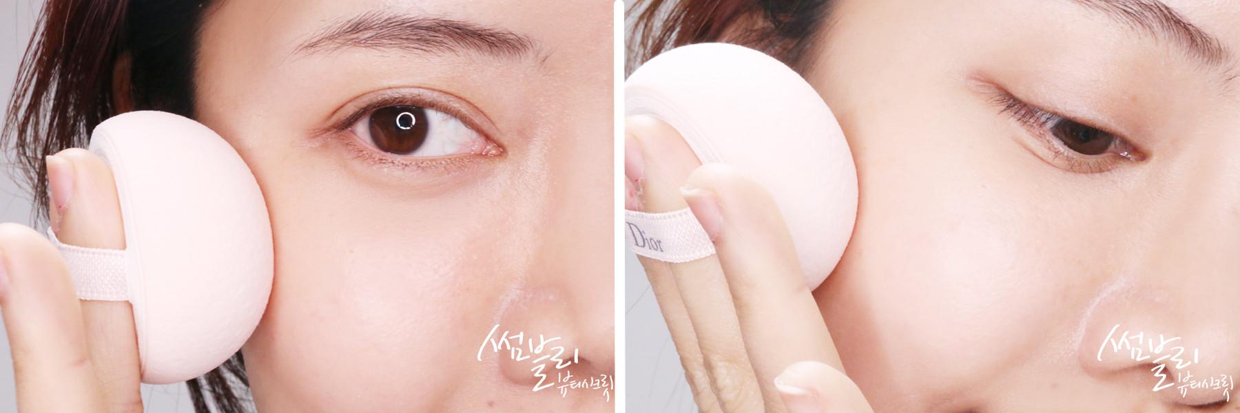 取適量Dior Snow 雪精靈防曬隔離美肌乳在手背上,然后用半球形海綿撲輕輕拍打開,提高服帖果。