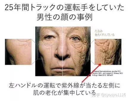 《新英格蘭醫(yī)學(xué)雜志》也刊登過一則消息,一個送牛奶的貨車司機25年來左臉靠近車窗常年受日曬已光老化,與右臉的對比相當(dāng)強烈!