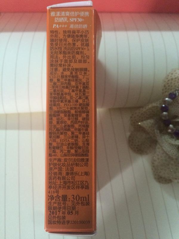 大家都知道雅漾家的護(hù)膚品是針對(duì)敏感及設(shè)計(jì)的,樓主我的皮膚是那種冬天用什么護(hù)膚品皮膚都會(huì)好的,夏天用護(hù)膚品用過(guò)很多牌子臉上都會(huì)長(zhǎng)閉口,然后有一次在朋友家用幾次了雅漾家的護(hù)膚品驚奇發(fā)現(xiàn)沒(méi)有長(zhǎng)閉口,開(kāi)心到忘形好嗎,果斷的入了雅漾家的套裝,然后想著手頭的防曬霜用完也換成雅漾家,沒(méi)想到閨蜜網(wǎng)竟然給我送來(lái)了這份驚喜-----試用品雅漾家的人稱"防曬小金剛",還是正裝,哈哈,容我得瑟一下---哈哈!