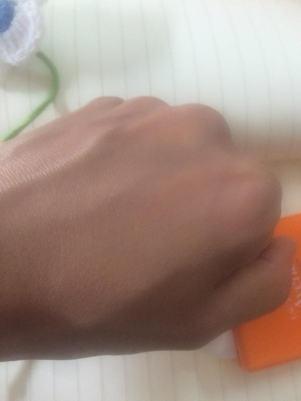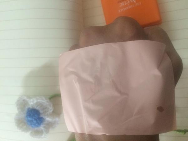 繼續(xù)抹開(kāi)來(lái)感覺(jué)沒(méi)有任何的油膩感,用了吸油紙?jiān)趧偛亮朔罆袢榈氖直成习磯阂矝](méi)有任何油分滲出,說(shuō)明這款防曬乳很清爽。