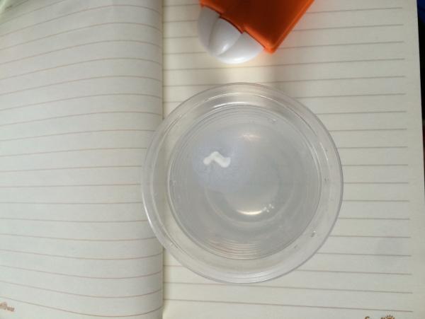 炎熱的夏天,很容易流汗,如果防曬乳沒(méi)有防水性那它的防曬果肯定會(huì)大大打折,擠一點(diǎn)雅漾防曬乳在裝有清水的杯子里,觀察到雅漾清爽倍護(hù)便攜防曬乳沒(méi)有溶化于水,說(shuō)明這款防曬乳的防水果好。